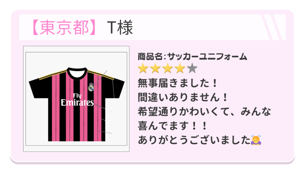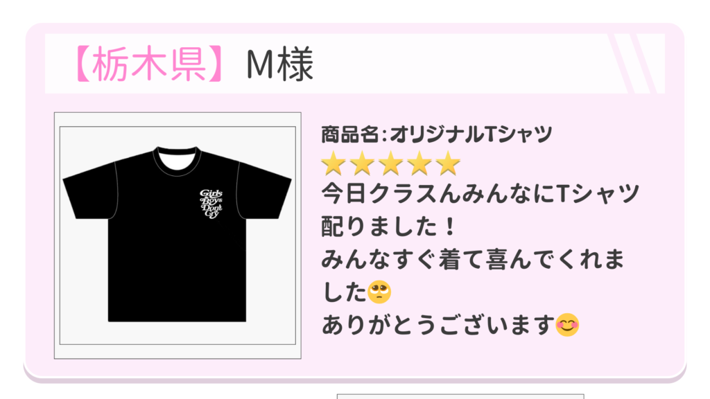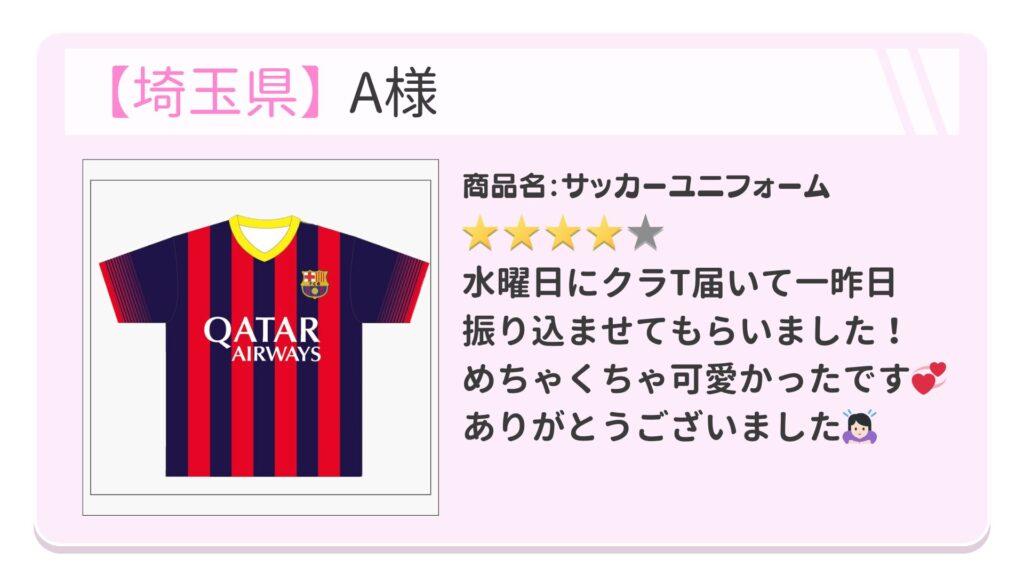 れにぷりでクラTを購入されたお客様の声をご紹介いたします! 品質とお客様対応に自信があるからこそ見せられるリアルな声です!